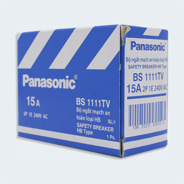 CB Panasonic BS1111TV 15A | Bộ Ngắt Mạch An Toàn 2P 1E 240V AC, Loại HB, Thiết Kế Nhỏ Gọn, An Toàn Tuyệt Đối
