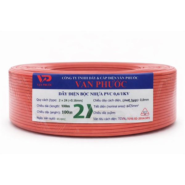 Dây điện bọc nhựa PVC 2×24 (≈0.5mm²) 0.6/1kV – Vạn Phước– Cuộn 100m