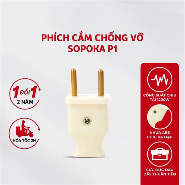 Phích Cắm Chống Vỡ Sopoka P1 | Nhựa ABS Siêu Bền, Chân Đồng 4mm, An Toàn, Bền Bỉ