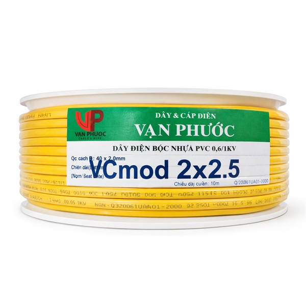 Dây điện bọc nhựa PVC Vạn Phước là dây dẫn điện hạ thế gồm 2 lõi đồng, bọc cách điện PVC, dùng cho lắp đặt hệ thống điện dân dụng và công trình. Sản phẩm được đóng cuộn 100m, phù hợp thi công tuyến dài, đi dây cố định.